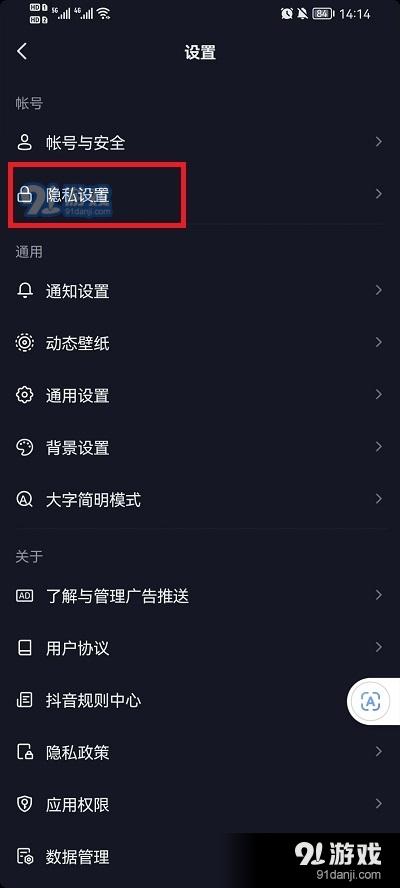 2.打开设置页面后,从列表中找到隐私设置选项,点击进入相关页面抖音涨粉平台,然后开启私人账户模式。