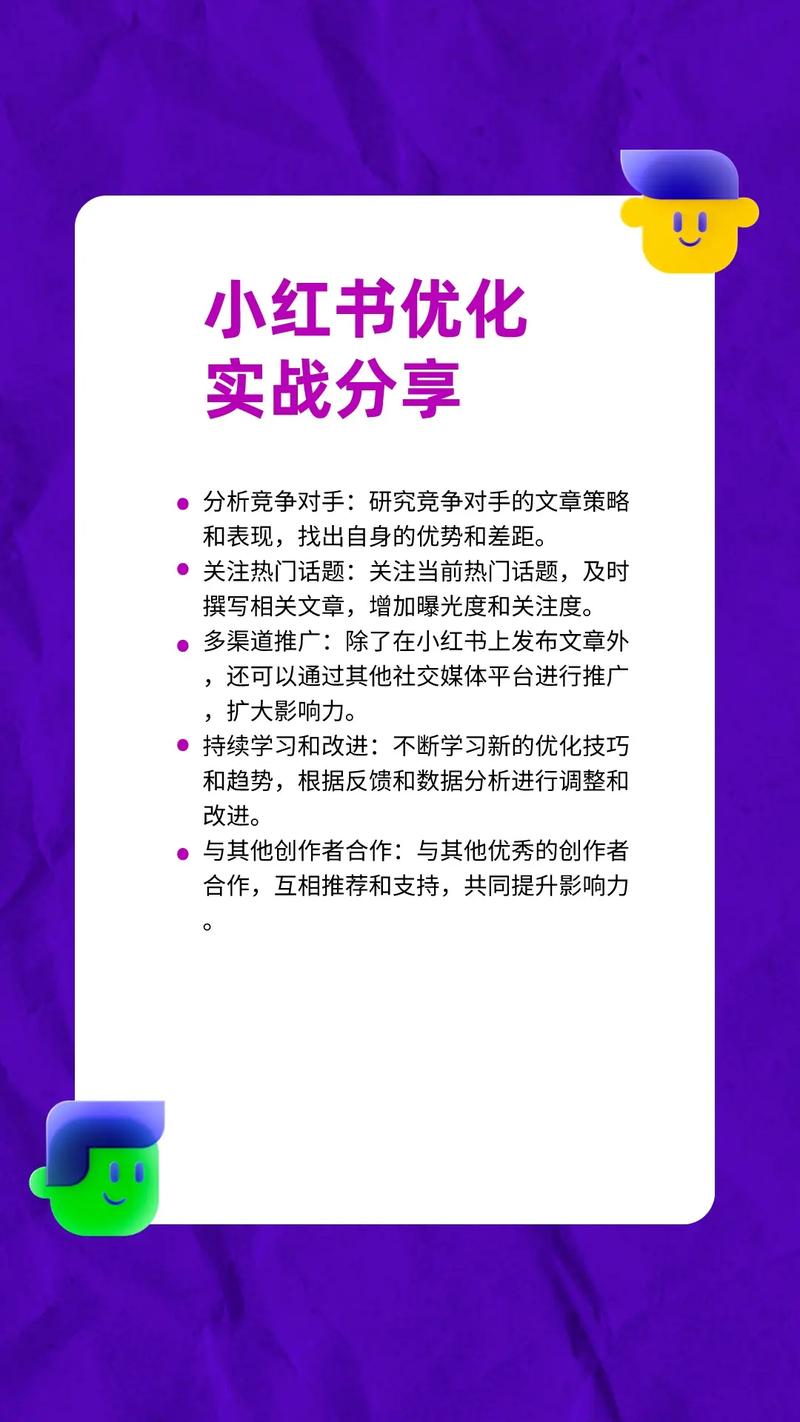首先,精雕细琢内容是关键:从笔记的标题、封面设计,到主要内容的撰写、主题标签的选择,每一个细节都需要精雕细琢。引人注目的封面和引人入胜的标题是吸引读者的第一步,而内容必须价值丰富、条理清晰、关键词布局合理,能够有效引导用户驻足并促进互动行为。