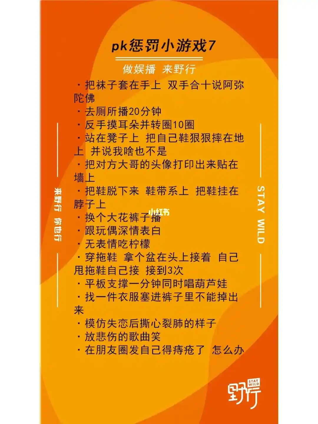 12. 含着一口水唱歌,让每个人都能听到所唱的内容; 13、表演大猩猩捶胸动作,大喊:我是强者(女);